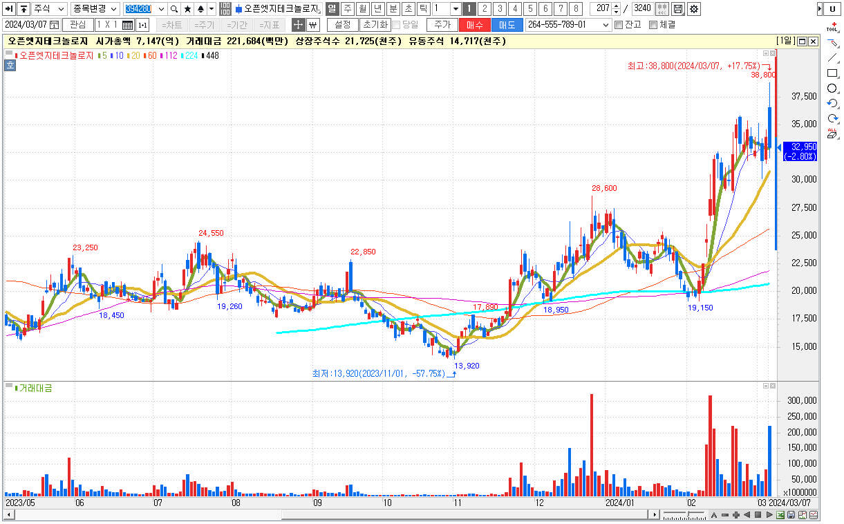 ▶ 엔비디아의 그래픽 처리장치(GPU)에 탑재되는 메모리 반도체를 공급 중입니다. 엔비디아 관려주 중 대장주로 인정 받고 있습니다. 현재 25,000원 ~ 35,000 원 사이에서 주가가 수렴중입니다. 조만간 큰 변동성이 있을 것 같습니다.